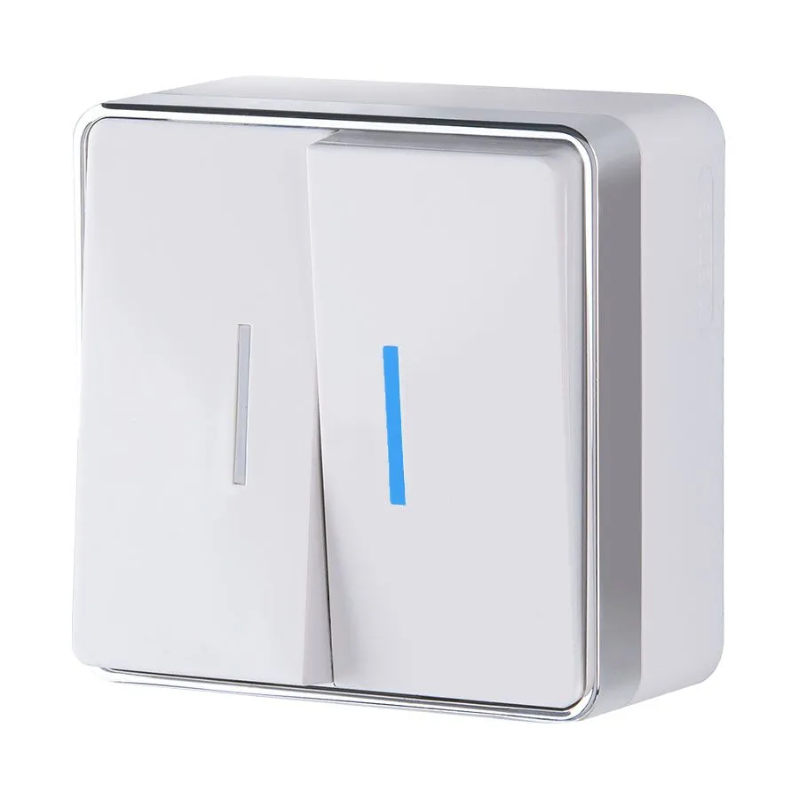 Современный двухклавишный выключатель с функцией подсветки Gallant белого цвета от Werkel станет стильным и функциональным дополнением вашей домашней электросети. Встроенная светодиодная подсветка облегчает поиск выключателя в темноте, делая использование освещения максимально комфортным и безопасным.
