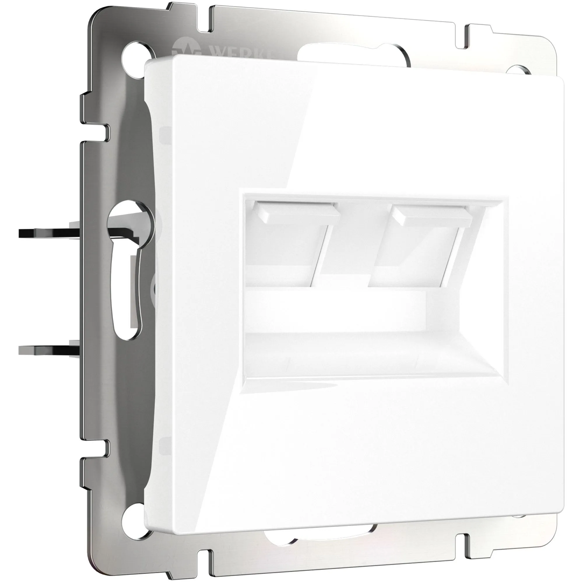 Интернет-розетка двойная совместима со всеми рамками коллекции Werkel, что позволяет создавать разнообразные цветовые и стилистические комбинации, подходящие под современные интерьеры.